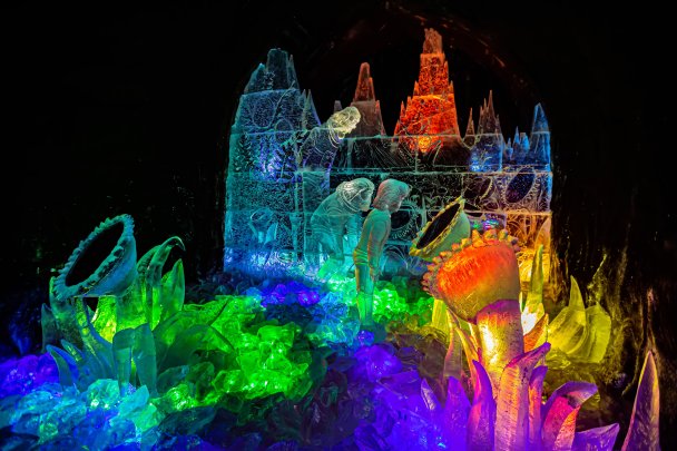Зимняя изюминка — экскурсионный центр «Снежная деревня» у подножия горы Вудъяврчорр. Как только выпадает первый снег, начинается арт-зодчество: материалом для скульпторов служат лед и спрессованный снег. Полярная ночь и красочная подсветка превращают замысловатые фигуры и целые залы в ожившую сказку. Снежная королева оценила бы масштабы: деревня занимает почти 2500 кв. метров.