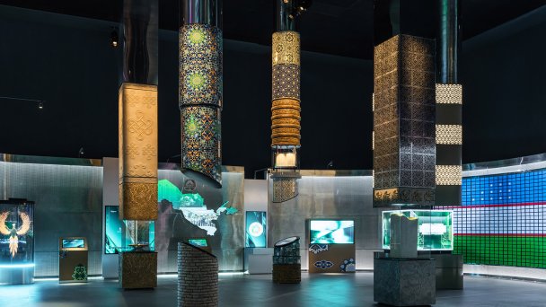 Это 1400 кв. м пространства с 66 мультимедийными интерактивными инсталляциями. В центре экспозиции — волюметрическое дерево, символ плодородия и добрососедства общин-махаллей. В финале экспозиция обращается к молодежи и ее роли в формировании нового облика страны. «Мы говорим о молодежи Узбекистана на языке молодежи, — рассказывает креативный директор студии Sila Sveta Александр Ус. — Мы используем и висящую LED-сферу, и голограммы, и экраны сверхвысокого разрешения с шагом пикселя 0,9 мм». Как говорит генеральный продюсер бюро Pitch Артем Рыбалко: «Это «живая» экспозиция, где можно регулярно обновлять содержание без перестройки декораций и мебели».