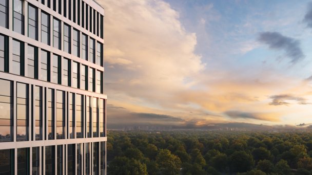 Архитектурная концепция, разработанная бюро BLANK, транслирует образ устойчивости и силы: вертикальная пластика фасадов, непременное для всей линейки бренда workplace панорамное остекление, виды на Мещерский лес. Выразительный силуэт формирует новый акцент на западе Москвы, а фасады с алюминиевыми панелями и вертикальными линиями остекления обеспечивают максимальное естественное освещение.