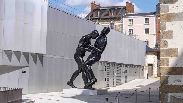Бронзовая статуя двух футболистов, запечатленных в момент удара, была создана алжирским художником Аделем Абдессемом в 2012 году, и изначально была выставлена в Центре Помпиду в Париже. В 2013-м она стояла на центральной площади Пьяцца-дель-Дуомо в Пьетрасанте, городке с населением 25 000 человек на побережье северной Тосканы (Италия).